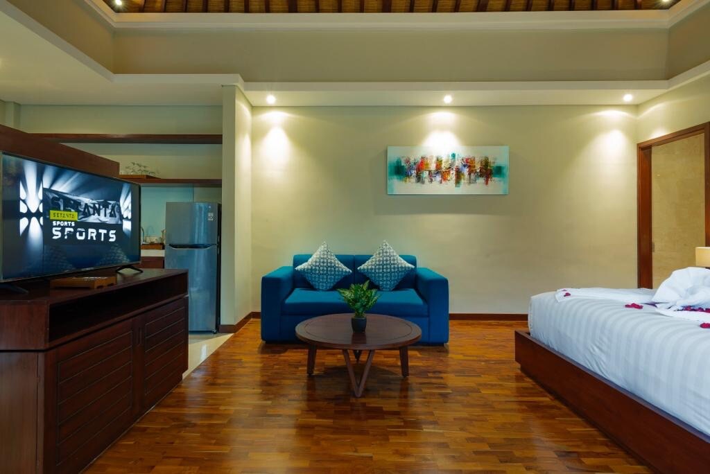 Escape to our stunning villa just 2km from the beach, with cafés and shops nearby. Enjoy a private pool, outdoor cinema, piano, VR games, PS5, Netflix, karaoke, and TVs in every room. Cook in the full kitchen or grill by the BBQ. Blending Balinese charm and modern comfort, this homey retreat offers everything for a peaceful, fun-filled family getaway. Book our Intro Promo for an unforgettable stay!