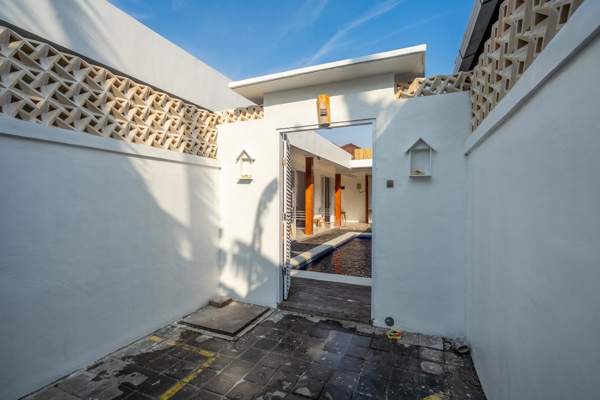 ✦ Tastefully picked and managed by BUKIT VISTA ✦ Welcome to our guesthouse in the Canggu where the cafes and beaches are just steps away. Despite being located near popular destinations, you will rest easy at night as the property is secluded from busy roads. Our guesthouse is remote working friendly as well Key Features: • Comfy double-size bed w/ AC • Private bathroom w/ hot water • Shared pool • WiFi 40Mbps & dedicated workspace • A shared kitchen