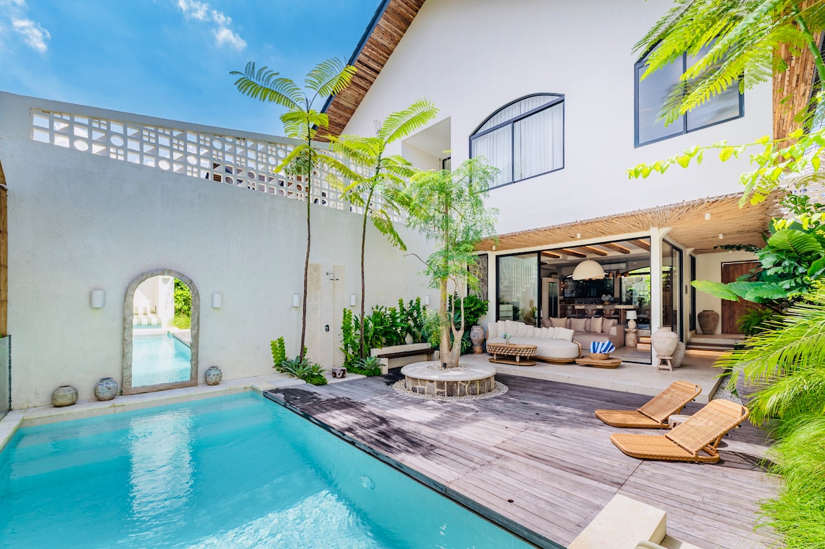 NEW! Modern, Tropical 2-Bedroom Villa Near Beach Jl. Subak Sari, Berawa ✔ Bedrooms with en-suite bathrooms, storage, workspace, SmartTV, and A/C ✔ Private swimming pool with lush garden, sun loungers, and open shower ✔ Canggu's MOST popular area ✔ Easy 5-10 minute walk to beach, Finn's Clubs, Atlas, shopping, and dining ✔ Spacious fully equipped kitchen ✔ Comfortable open living and dining area ✔ Free Fibre-Optic Wifi ✔ Daily cleaning ✔ Free Flow Drinking Water ✔ Parking area ✔No smoking villa