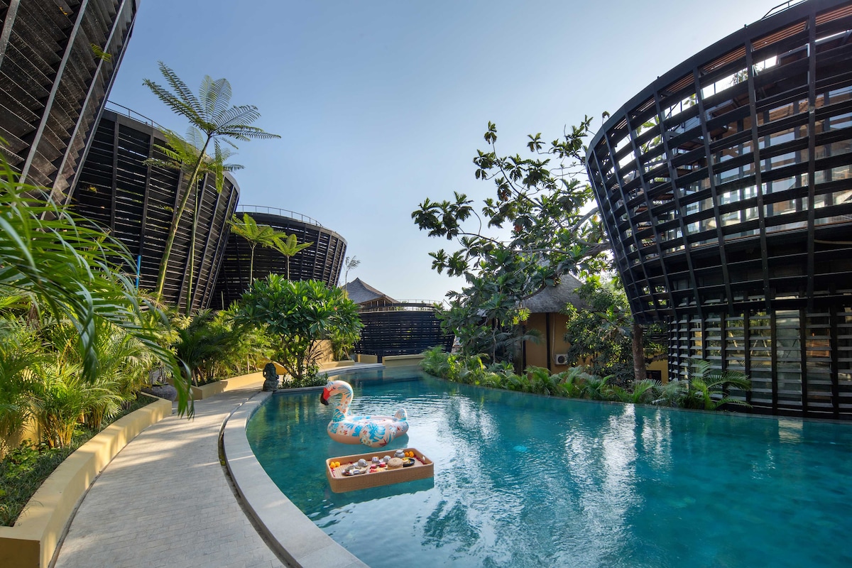 Try the ambience to stay in petitenget area with new property that opened since 2021. Resort facilities are Spa, Gym fitness centre, Restaurant inside 24 Hours open, large parking area, Big garden at lobby area. All the unit had private pool with lovely charming staff and close with public facilities around. Just need 6 minutes going to petitenget beach, and some shopping area are nearby. Feel the best experience service from our team for your holiday. See you in Bali :)