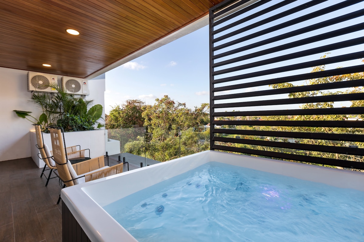 📣 OPENING PROMO Nestled in the vibrant coastal town of Canggu, our residental unit comes with hot tub and offers a distinctive living experience, where sophistication meets wellness at the renowned Body Factory Lifestyle Residence Highlights: - 70 sqm total living area - Dining area with kitchen & bar - Living room (19 sqm) - Bedroom (15 sqm) w/ en-suite bathroom - Private balcony - Exclusive hot tub for wellness and recovery The apartment is fully equipped and staffed for a flawless stay!
