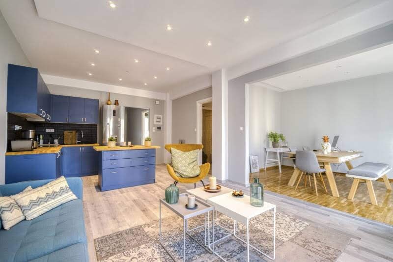 The Daphne’s residence is located in Thission, in the historical center of Athens, very close to most sights of interest (10-20’ walk), nightlife and public transport (Thission metro station is a short 8' min walk as Kerameikos metro station is also a short 8 min walk (500m). You’ll love Daphne’s residence because of its location and its stylish decoration. The apartment is big enough (50 square meters) for 4 people, is ideal for couples, business travelers, solo adventurers and small families.