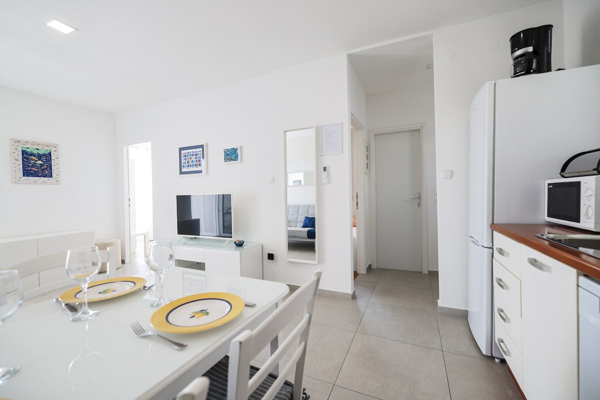 This beautiful apartment is located just a few centimeters from the sea on a unique location close to the center of Zadar. It has two bedrooms and a very cozy living/dinning room area with an extraordinary view overlooking the islands.