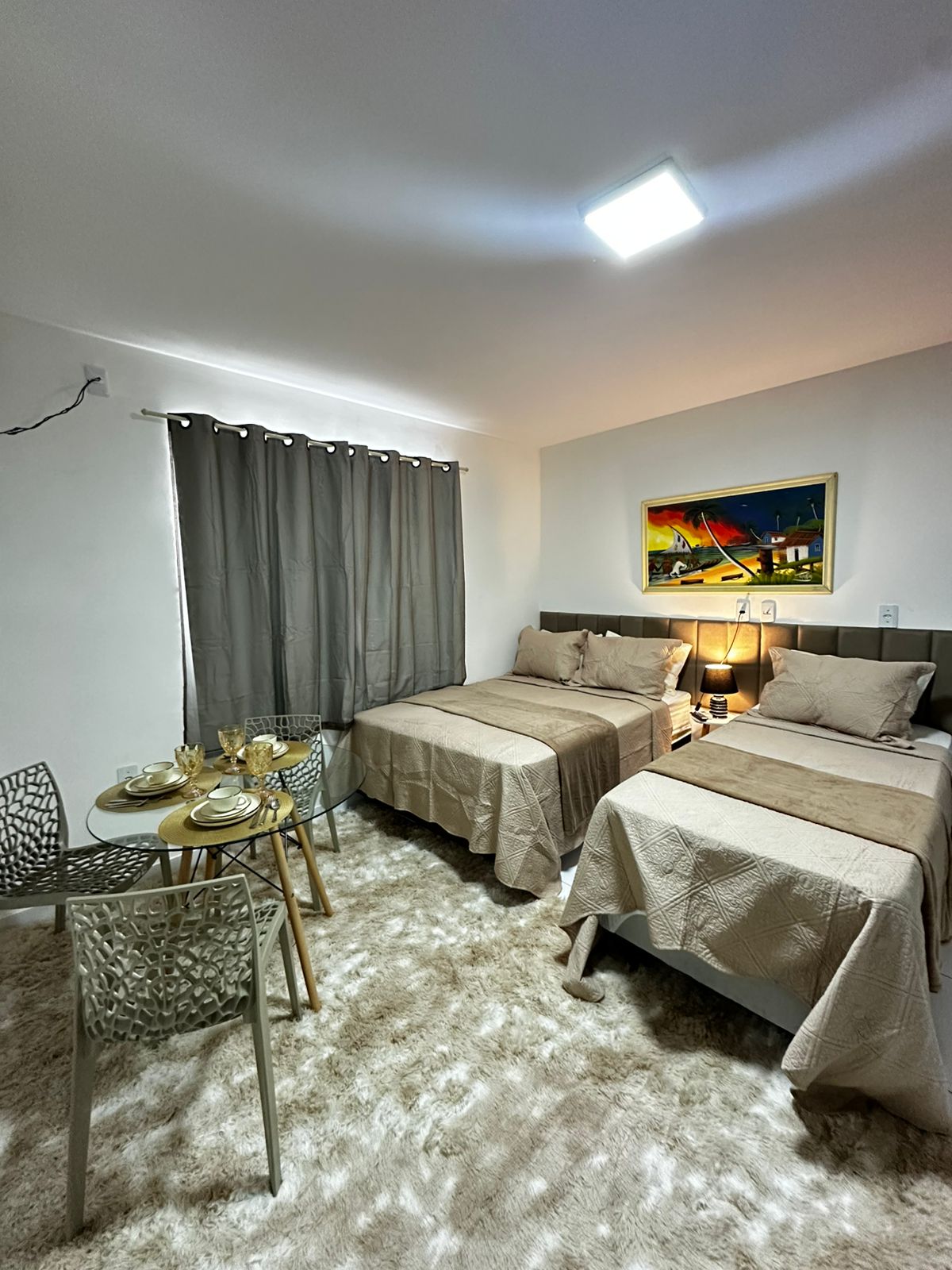 Hospede-se no coração da cidade! ✨ Apartamento confortável no centro, a poucos passos do shopping, restaurantes e serviços. Ideal para casais em lazer ou negócios, com infraestrutura completa no condomínio: piscina, academia, salão de festas e portaria 24h. 🚭 Proibido fumar. ⚡ Tensão elétrica 220Volts