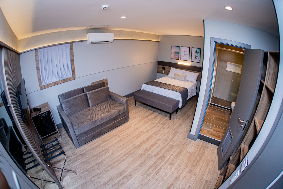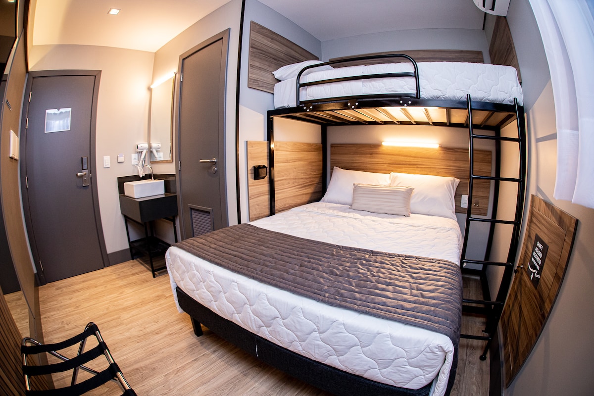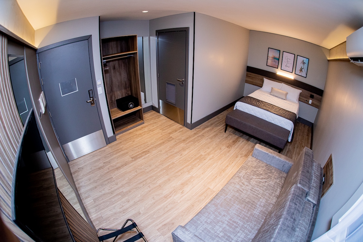 Hotel novo com quartos pequenos e aconchegantes. Muito bem localizado, cercado de bares, restaurantes, farmácia, academia e etc. A melhor região da cidade! não vai querer sair desse lugar charmoso e único. Quarto com 02 camas casal.