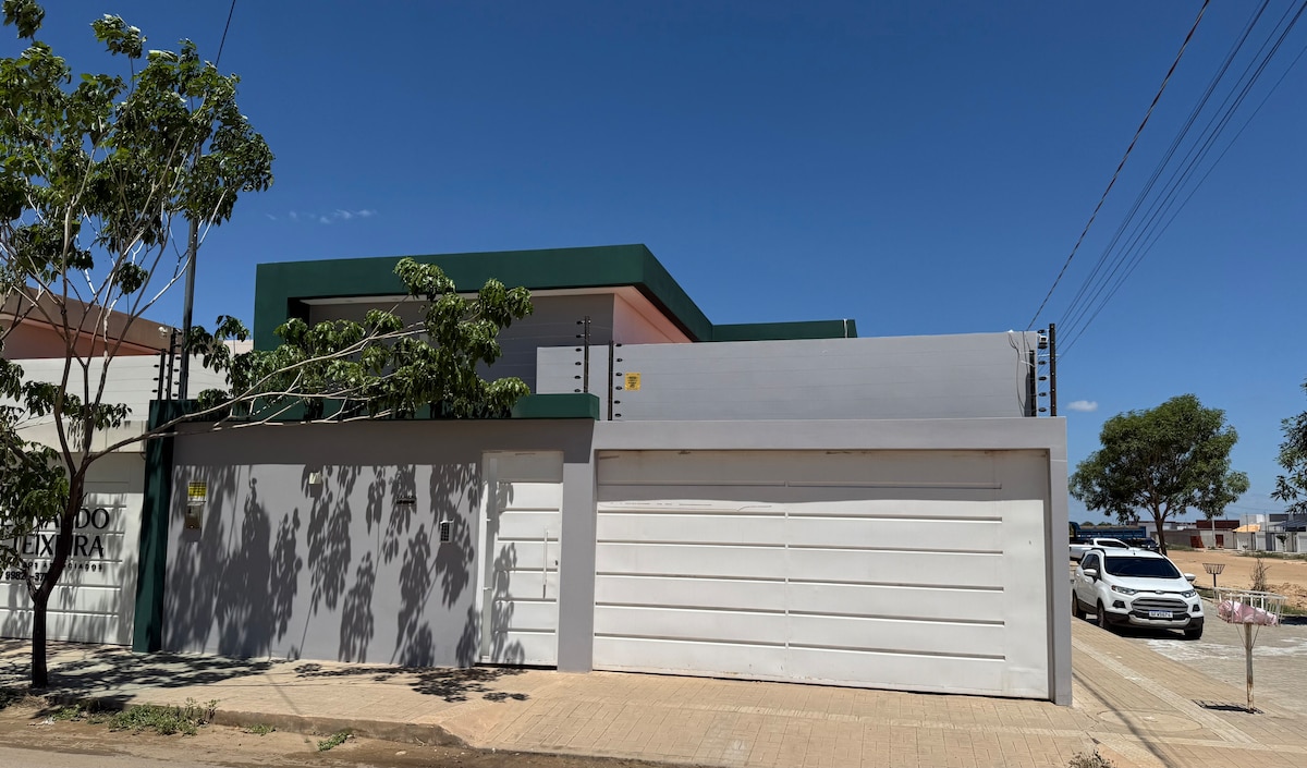 Ótima casa, bonita, estruturada e espaçosa com 4 quartos, todos com ar condicionado, acomodando até 16 pessoas, próxima de tudo e com acesso totalmente asfaltado e seguro! Oportunidade para se hospedar bem, com baixo custo e aproveitar a sua estadia, seja a passeio ou trabalho, nas cidades de Juazeiro - BA e Petrolina - PE no Vale do São Francisco. Sejam bem-vindos! Obs.: os quartos são disponibilizados conforme o número de hóspedes informados na reserva.