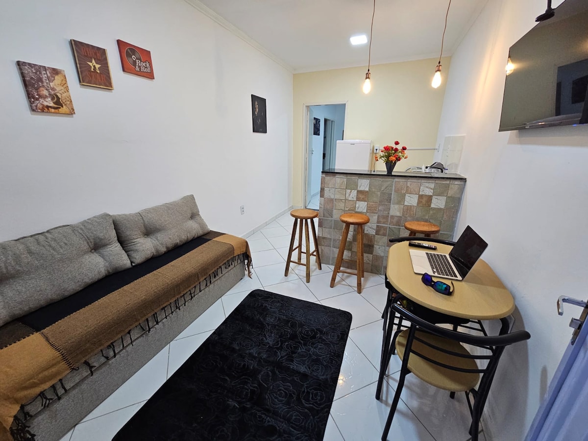 Welcome to your modern studio in the heart of Petrolina — a cozy space that combines comfort and practicality. Ideal for up to two guests, it features a queen-size bed, air conditioning, TV, fast Wi-Fi, and a workspace. The kitchen is fully equipped with an electric stove, refrigerator, microwave, air fryer, and coffee maker. We accept pets and offer a safe, functional, and very well-located stay.