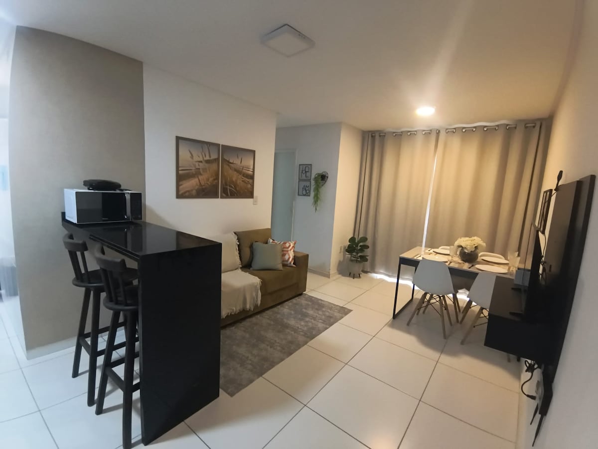 Relaxe com toda a família nesta acomodação tranquila. A poucos metros da orla, próximo a pontos turísticos e ao centro de Petrolina. No apê: -wifi de 200mb - Self Check-in - ar condicionado em um quarto e um quarto com ventilador - Smart TV 50" com Netflix e Paramount - Roupas de cama e banho inclusas - Cozinha compacta com microondas, fogão, liquidificador, sanduicheira, panelas e geladeira - garagem 01 vaga