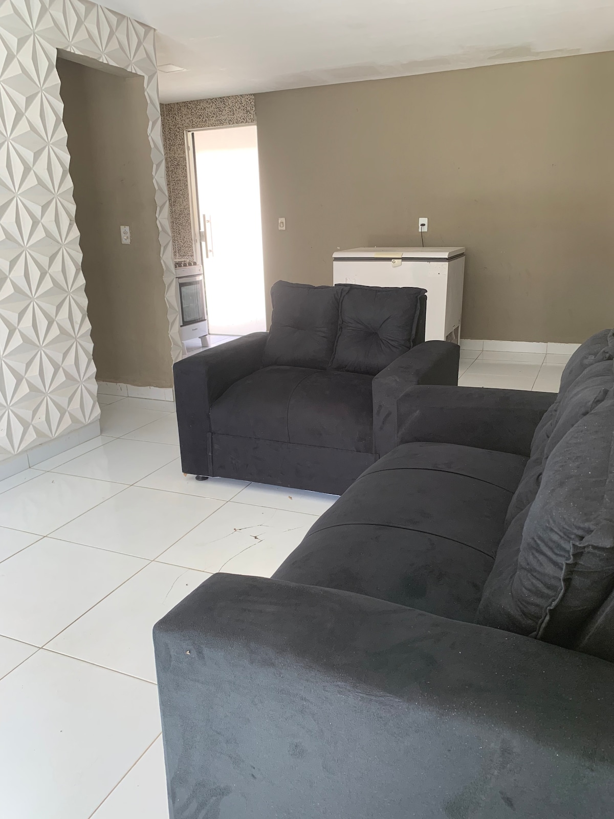 O espaço é bastante amplo e a área de convivência é aberta, com muito verde... um amplo estacionamento... coqueiros, mangueiras, limoeiros, ciriguelas são algumas das fruteiras no local. O espaço é privativo aos hóspedes e exclusivo para a quantidade informada no momento da reserva. Visitas são aceitas mediante taxa adicional e combinado previamente com os anfitriões.