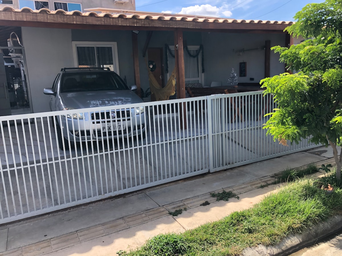 Casa em condomínio SEGURO TRANQUILO e AGRADÁVEL acomoda até 10 pessoas -COZINHA (equipada) -2 QUARTOS (CLIMATIZADOS) -2 BANHEIROS Área externa: MESA REDE LOJA DE CONVENIÊNCIA e PORTARIA 24hrs. Lençóis e toalhas disponíveis PROIBIDO VISITA e BANHO PISCINA. Reserva até 2 pessoas, um quarto fica fechado.