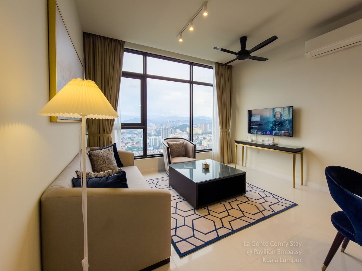 Welcome to La Gente Comfy Stay! We wish to provide single or couple travellers with a great value house in a luxe apartment to stay in KL city center with access to high end facilities in a newly built high end condo. - 5m drive to KLCC, US embassy or 15m by foot - 5m walk to Thai, China embassy - 10-15m walk to Russia, Saudi Embassy - 10m drive to Pavilion KL, Bukit Bintang - 7m walk to the nearest LRT/MRT Ampang Park - 1 parking lot