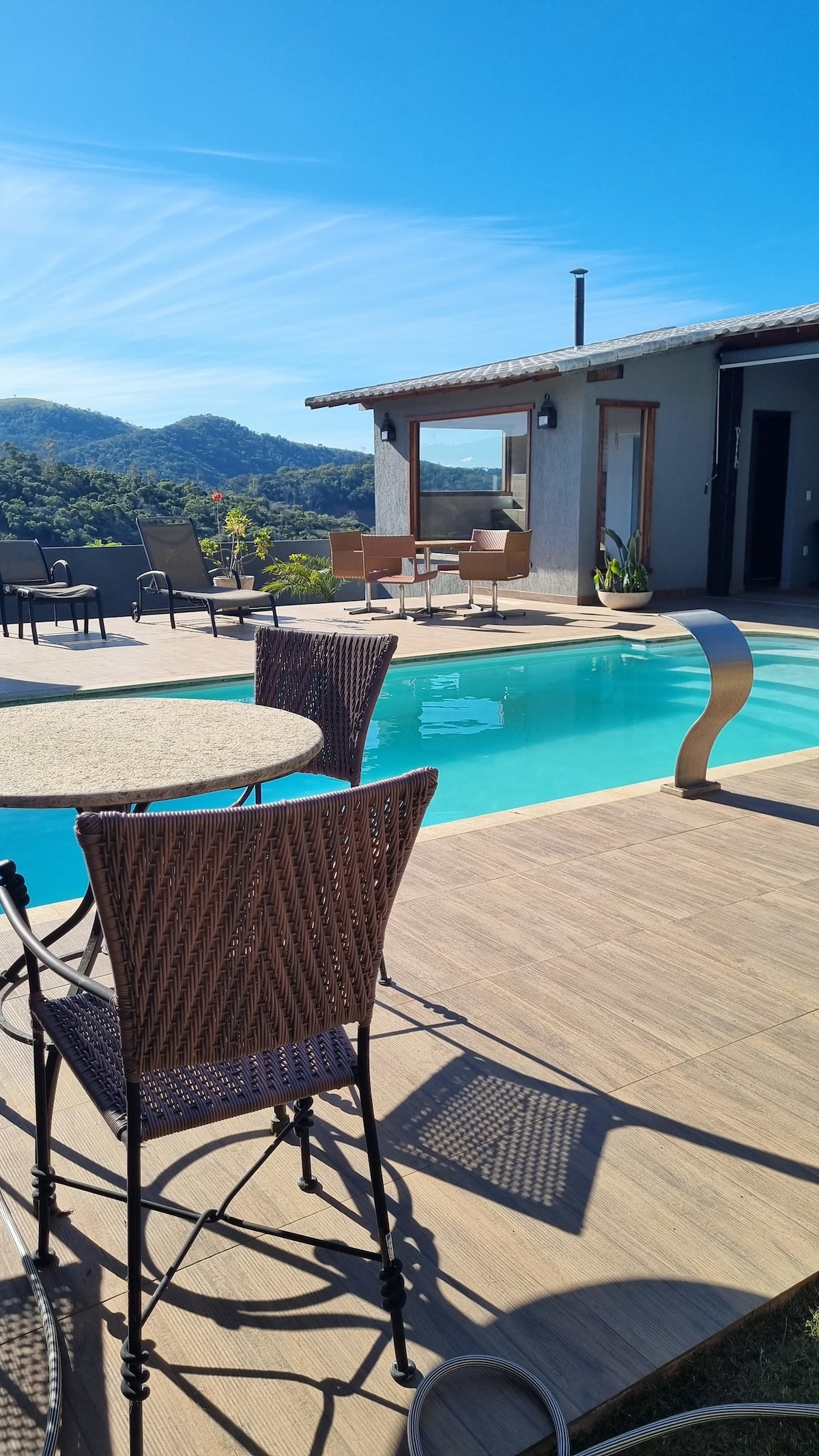 Um convite para a pausa, nossa Cabana foi pensada e projetada para você se sentir confortável num espaço rústico e acolhedor completamente imerso a natureza. A casa tem vista para as montanhas 360 graus. O pôr e o nascer do sol é um show a parte. Nosso banheiro possui teto de vidro o que permite uma experiência de apreciar o céu enquanto toma banho. E uma piscina de borda infinita onde vc desfruta nas montanhas.