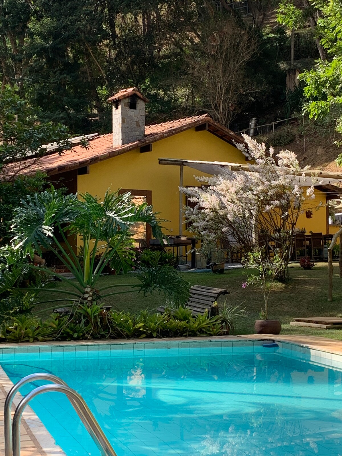 Relaxe com sua família ou amigos nesse paraíso em Araras, Petrópolis. Terreno com 5 mil m2, com arvores frutíferas, horta. Casa com 3 quartos, uma suíte, banheiro, sala de jantar, sala de estar, sala de leitura, varanda envidraçada, cozinha aberta para sala, lareira, área de serviço e estacionamento para vários carros. Desfrute de um espaço de lazer completo, com piscina, sauna, banheiro, lavabo e churrasqueira. Tem wifi 200mb ( oi fibra ótica), smart TV 43" netflix, primevideo TV42" no quarto.