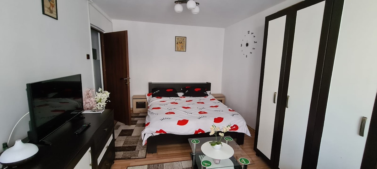 The whole group will enjoy easy access to everything from this centrally located place. Is a nice brand new flat for 2 persons, to help you enjoy and relax yourself. The flat is equipped with new Coffee machine , microwave, fridge & freezer, spacious shower, hairdryer, iron , bathroom with ventilation,tv , internet, Netflix, Romanian channels, double bed and one nice sofa with two living room chairs and many others . You can have everything what do you need during your staying