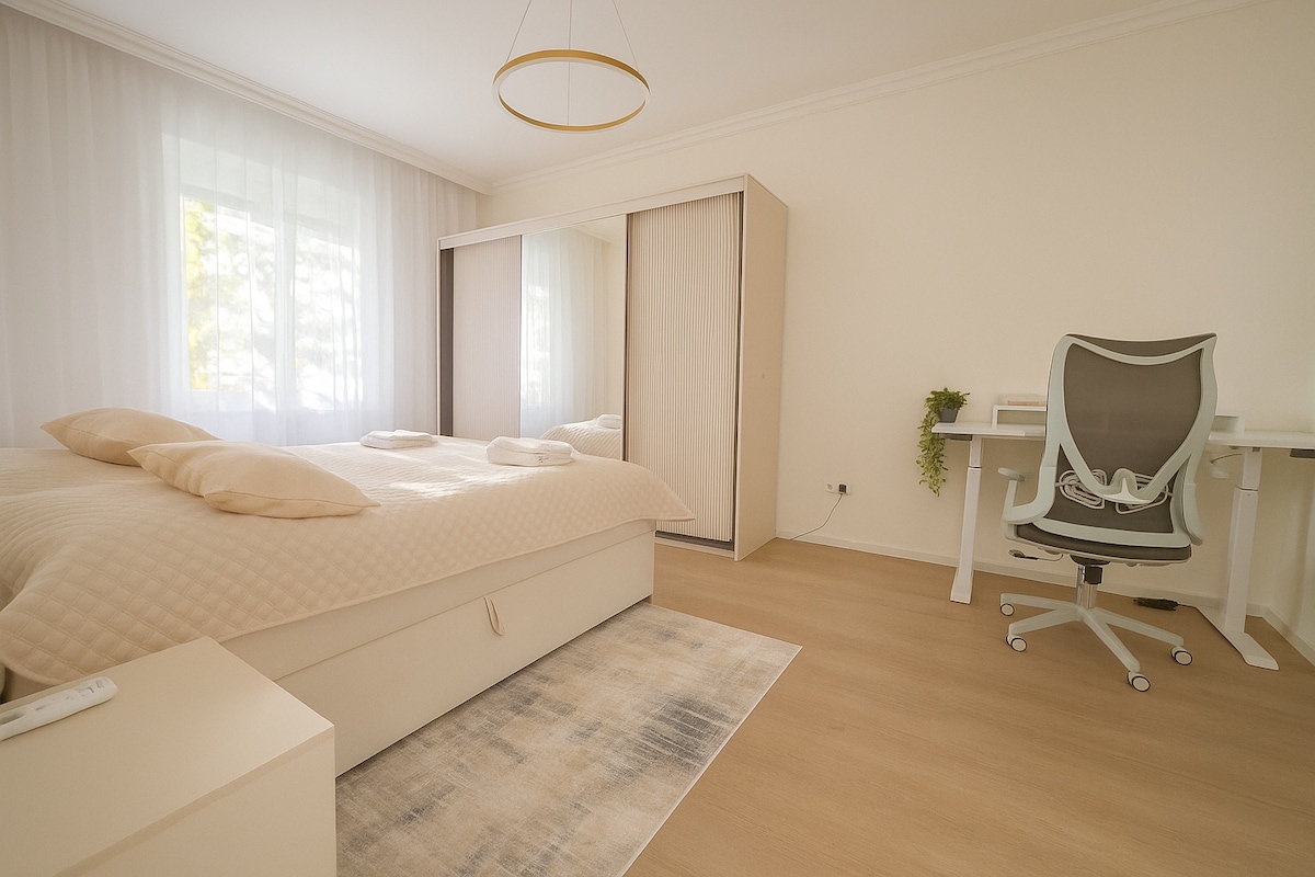 Toto špeciálne miesto sa nachádza blízko všetkého, čo uľahčuje plánovanie vašej návštevy. Plná vybavenosť v tesnej blízkosti, potraviny, reštaurácie, bary, kaviarne, zmrzlina, lekáreň, drogéria, ihriská, bus zastávky, share bike, ... Priamo pri cyklo chodníku korzo, do/z centra mesta pol hod. pešo, 15min na bicykli, 10min bus, 5min autom. Kúsok historický park, príroda, rieka Dunaj, nákupné centrum, k diaľnici/obchvatu bez semaforu/zastavenia. K dispozícii kávovar, tv, wifi internet, parkovanie