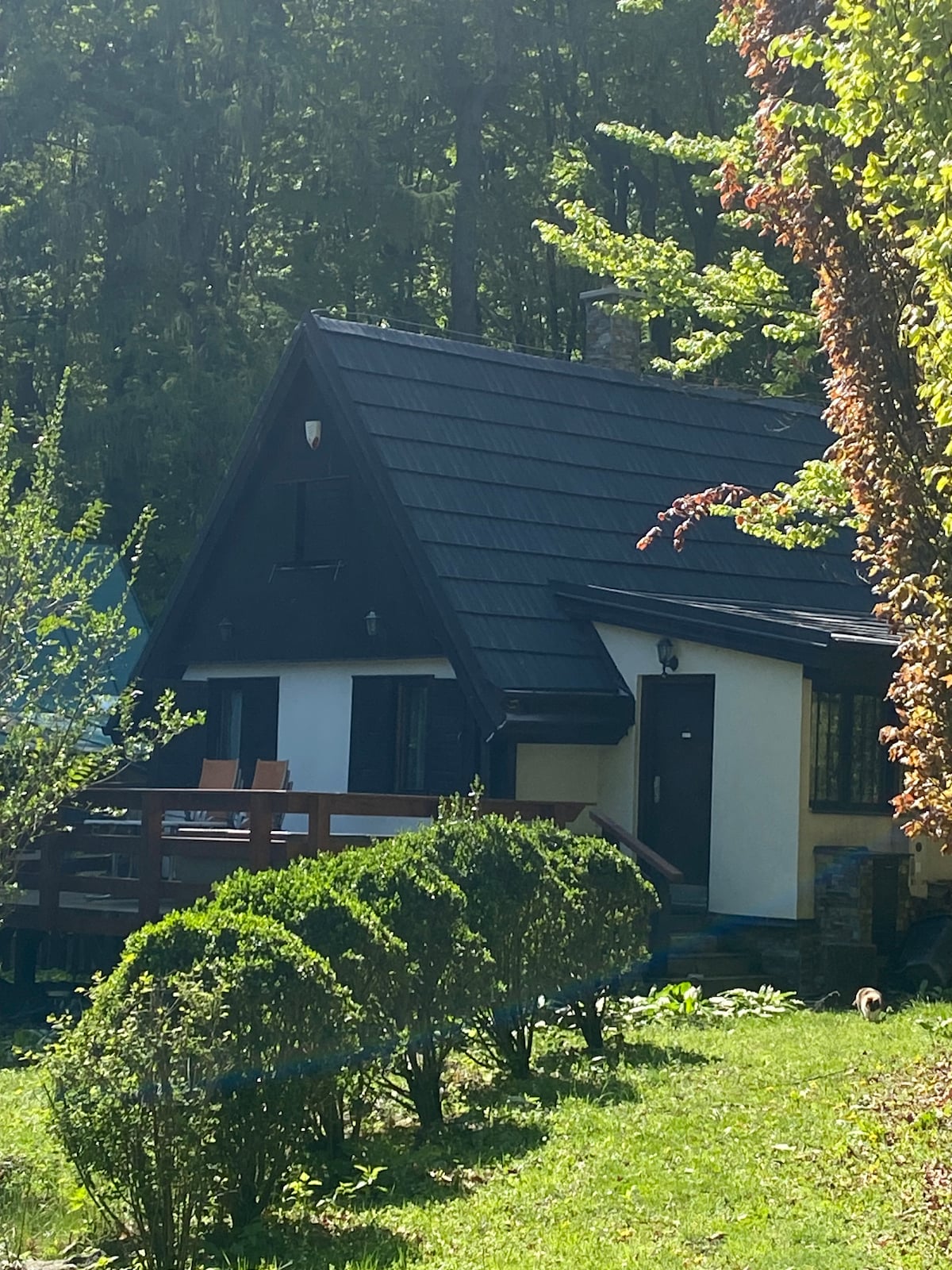Our wooden house was made by my grandfather 50 years ago. It consists from living room with fire place, folding sofa bed for 2 persons, small kitchen, bathroom and on the first floor there is one bedroom with a king bed and 3 single beds. During your stay in our wooden hut you could see squirrels, forest birds, stag beetle, salamanders, hedgehogs, and different animals... deers come for visit sometimes. It is located in recreational area of Harmónia near Modra.