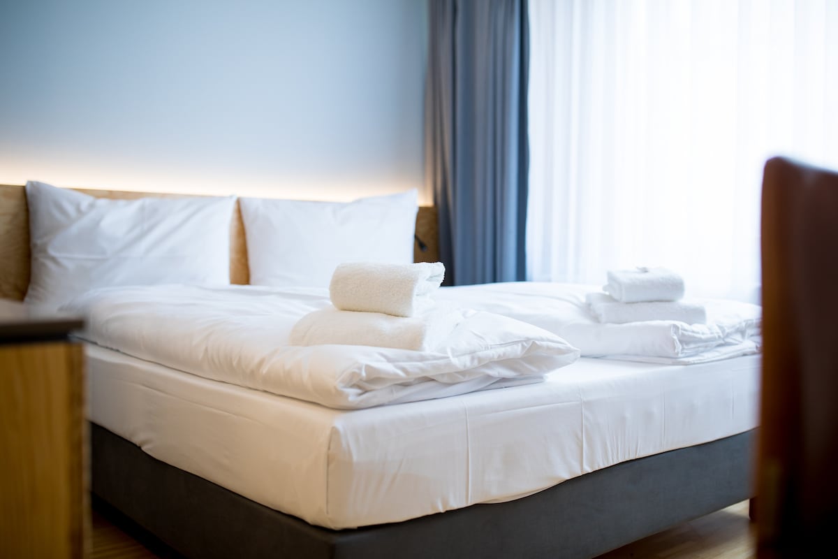The Double Room at Bayer 89 Vi Vadi Hotel offers full 3-Star Superior comfort. It has a premium queen sized SIMMONS bed, A/C, a bathroom with rain shower and heated floor, a desk and a wardrobe with safe. Fast WiFi is included. In the building there is a very popular Italian restaurant. Breakfast is offered at a supplement. Parking spaces are available in the hotel garage. Walking distance to the main station: only 5 minutes.
