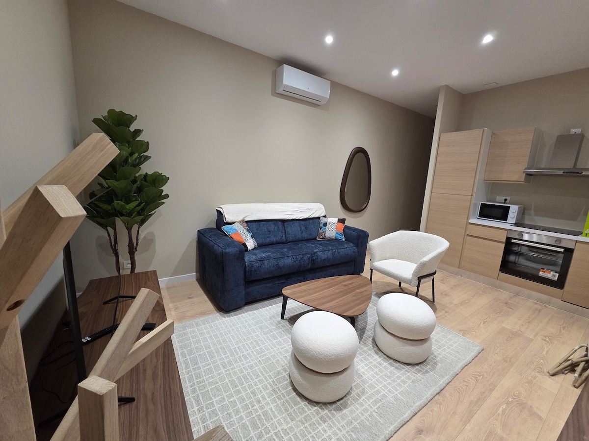 Résidence calme et sécurisée à 1 mn de la sortie de l’autoroute Proximité tout commerces/restaurants Pkg privé Appartement lumineux et moderne en Rez-de-jardin / 2 terrasses T2 / 50 m2 entièrement rénové, 4 personnes Wifi gratuit (fibre) Accès PMR Salon Ciné 165 cm / Salle à manger /cheminee électrique 😊 Chambre tout confort avec smart TV Canapé convertible 2 places L’ensemble du mobilier et literie sont neufs Cuisine entièrement équipée Salle de bain lumineuse avec douche a l’italienne