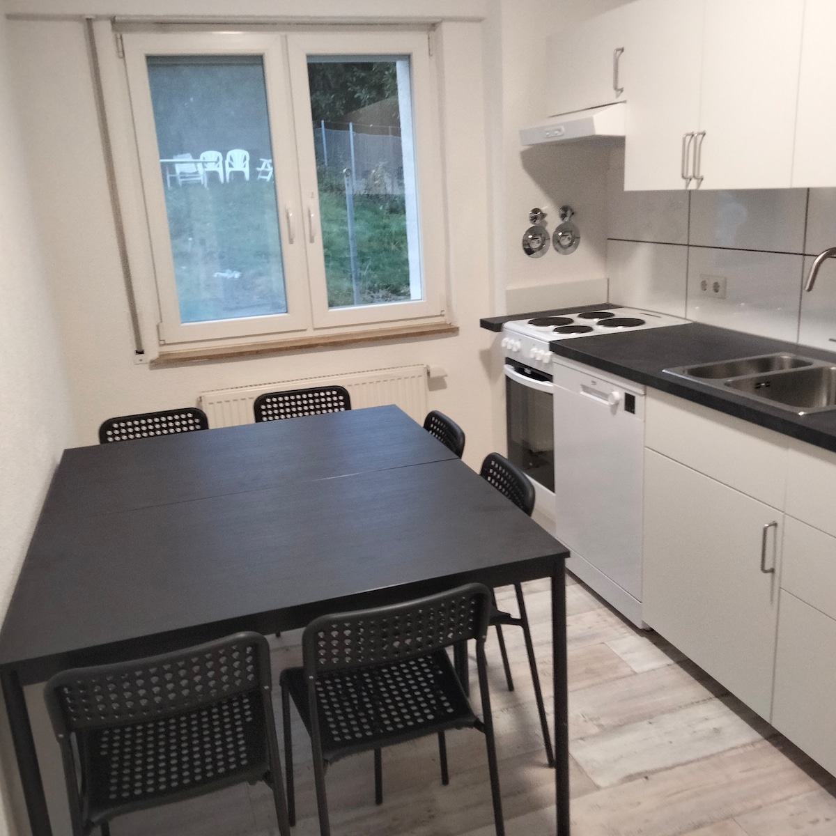 Ich vermiete eine gemütlich möblierte Einliegerwohnung (ca. 50 qm) in einem ruhigen Wohngebiet – mit separatem Eingang und eigenem Parkplatz. Die Küche ist komplett ausgestattet (u.a. Mikrowelle, Spülmaschine, Kaffeemaschine), das Bad bietet Dusche, Föhn, Waschmaschine und Trockner. Im Außenbereich warten ein Tisch, 4 Stühle und ein Grill auf schöne Stunden – auch wenn noch nicht alles ganz fertig ist. TV (Astra) und WLAN sind inklusive. Ideal für entspanntes Wohnen mit Komfort.