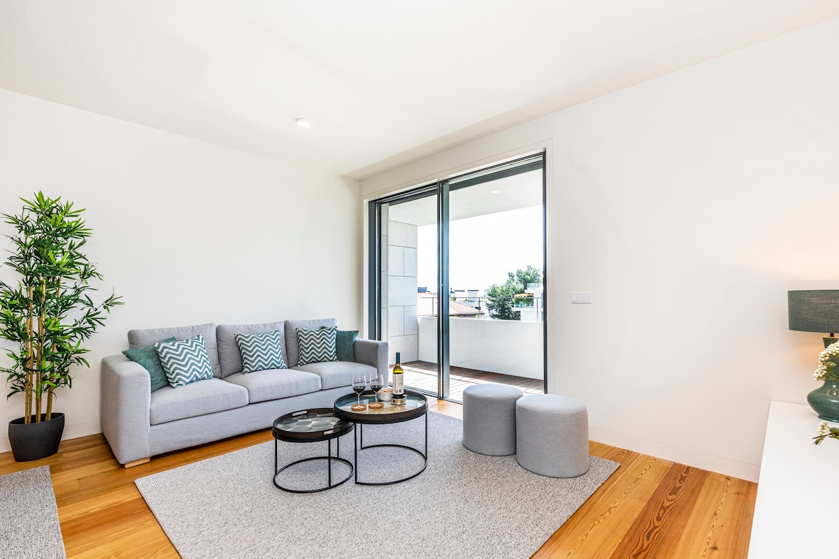 Apartamento reconstruído por arquitecto, excelente privacidade, exposição solar, com wifi, e praia a 150m. 1 suite com SPA e banho turco com aromaterapia. 1 suíte com terraço com vista mar, tela de projeção de cinema. Sala com vista de mar, rio, e terraço, onde poderá disfrutar de uma zona de estar e de um barbecue com grelha em ferro forjado. Perto de restaurantes, cafés e supermercado, e estação de comboio. Ar condicionado e piso aquecido em todas as áreas, TV 4K e box independente por suíte.