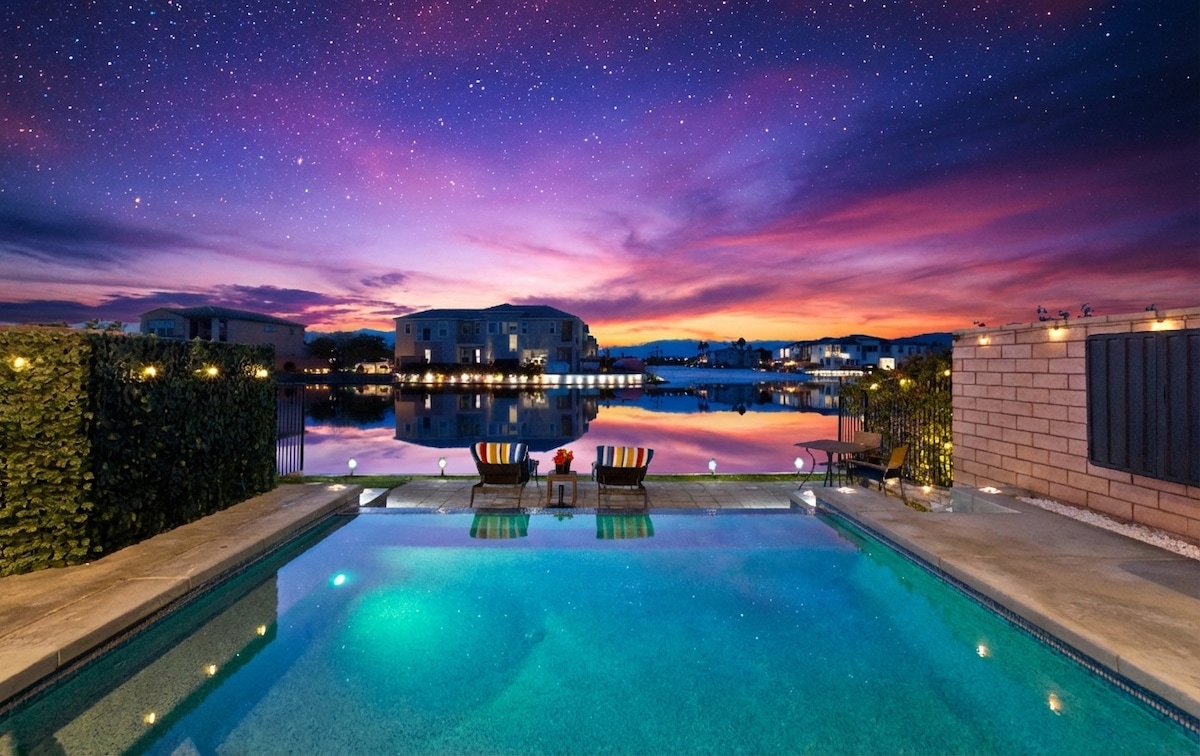 Welcome to Desert Social – your ultimate Vacation Oasis! Perfect for groups of all sizes, this elegant lakeside retreat offers luxury, endless fun, and easy access to festivals, shops, dining, and Palm Springs. Featuring a stunning outdoor area, Saltwater Pool, Spa, Sauna, Game Room, Mini-Golf, Toys, Home Theater, and more, there’s fun for everyone. Hiking - 3 min drive Grocery - 5-10 min drive Golf Courses - 2-7 min drive Elevate Your Stay with Fun and Elegance; Details Below