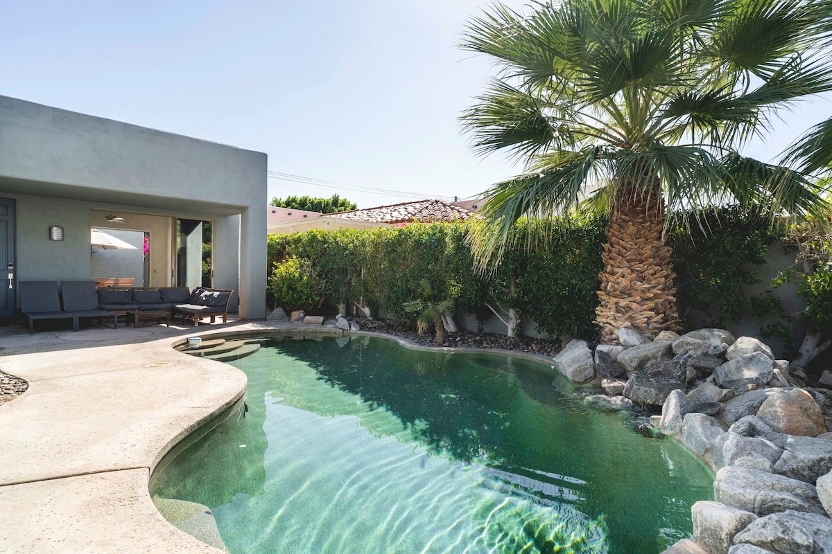 #259290 Find your oasis in the desert at Casa de Cala - a thoughtfully designed, California-casual retreat in the scenic La Quinta Cove neighborhood. Relax and unwind in the sunny interior spaces, welcoming bedrooms and spa-like bathrooms. Within the privacy of this fully-walled property, you can lounge in the sun, splash in the pool and watch the sun set over the mountains. Close to top-rated golf courses, restaurants, hiking, festival grounds and more!