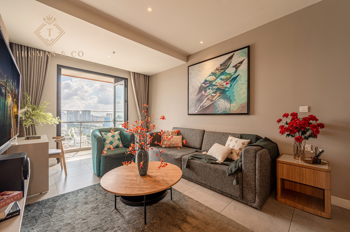 The apartment is beautifully designed in Wabi Sabi style located in D1Mension Residences building, District 1 apartment center, artistic style, high-class resort amenities, special rooftop swimming pool _ spa pool _ sauna room, gym_ showroom, private office, garden fish pond, 4' pizza right in the lobby, garden BBQ area, children's play area, spacious waiting room, All bedroom windows and balconies are airy, unique, luxurious, classy apartment