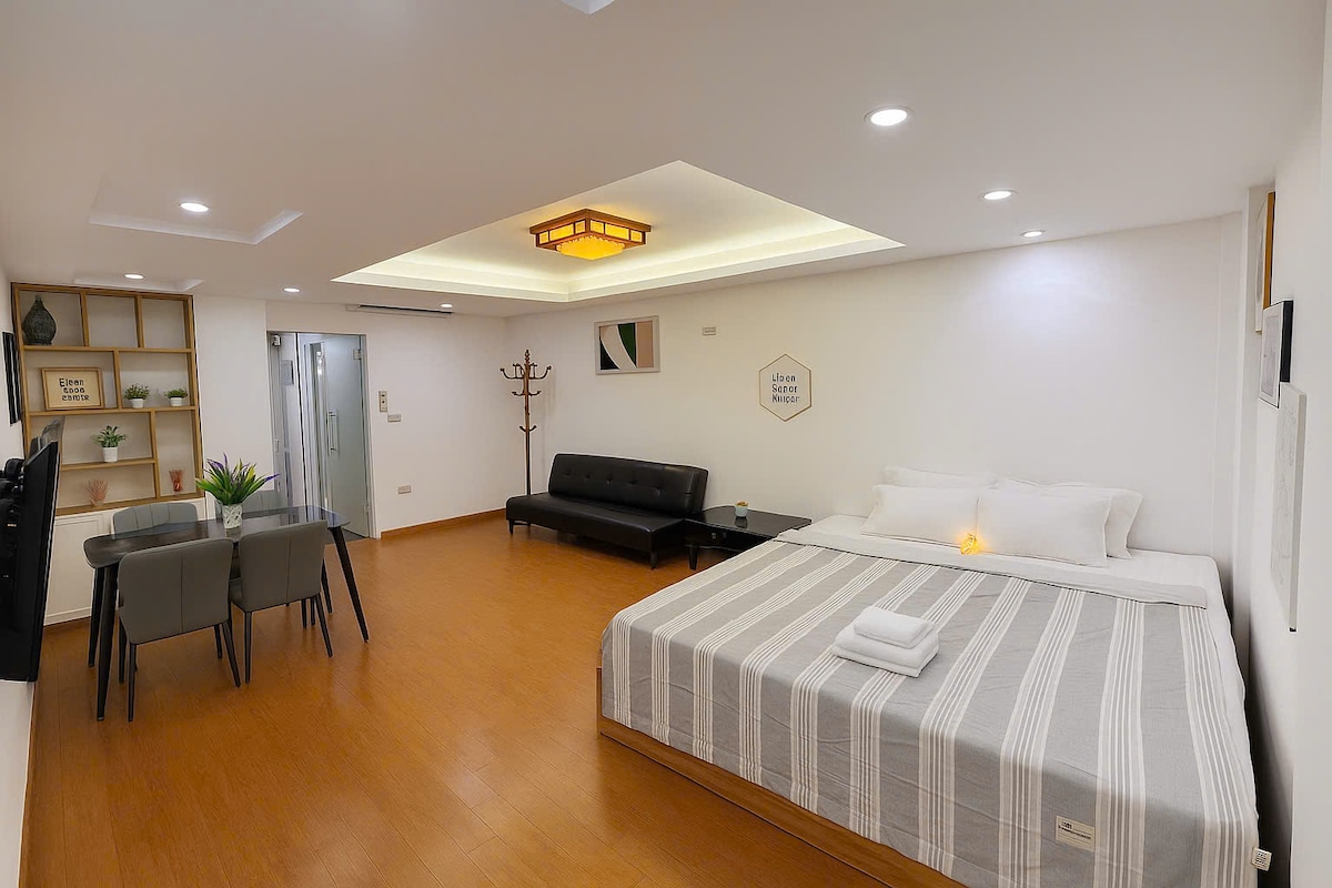 Japandi Comfort near Hoan Kiem Lake – Just a 5-minute walk from Hanoi’s iconic lake, this 40m² apartment blends Japanese minimalism with Scandinavian coziness. Enjoy a bright window with street views, a fully equipped kitchen, Netflix, and a washer-dryer. Surrounded by cafés, landmarks, and the charm of the Old Quarter, it’s the perfect retreat for travelers seeking style, comfort, and convenience.