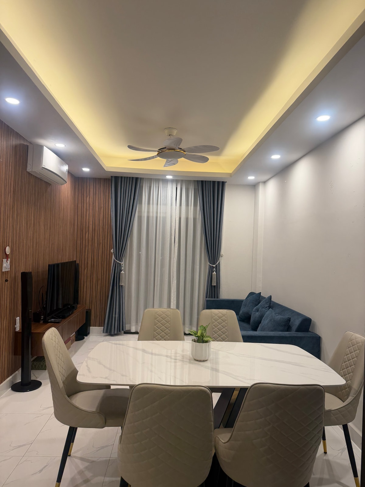 Luxury and spacious 2-bedroom apartment in the heart of Phan Rang city. Only minutes from Ninh Chu beach, our apartment features 1 living room and two bedrooms, suitable for families and can host up to 4 adults. Amenities: fully equipped kitchen, dining table, private bathroom with temperature-controlled shower, outdoor shower, living room with flat-screen TV & Netflix, fast wifi, outdoor BBQ facilities for your use free of charge, and private parking on premises.