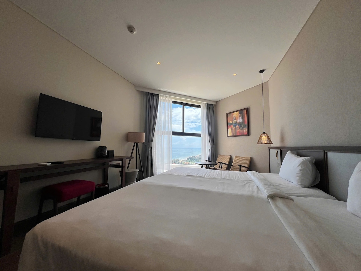 Welcome to Apec Mandala Mũi Né, where luxury meets tranquility in one of Vietnam’s most breathtaking coastal destinations. Each room thoughtfully designed to provide ultimate comfort while embracing the beauty of the surrounding nature. The interiors feature a harmonious mix of modern aesthetics and traditional Vietnamese elements, creating a cozy yet luxurious ambiance. Floor-to-ceiling windows allow natural light to flood the space, panoramic views of the turquoise sea, and lush landscapes.