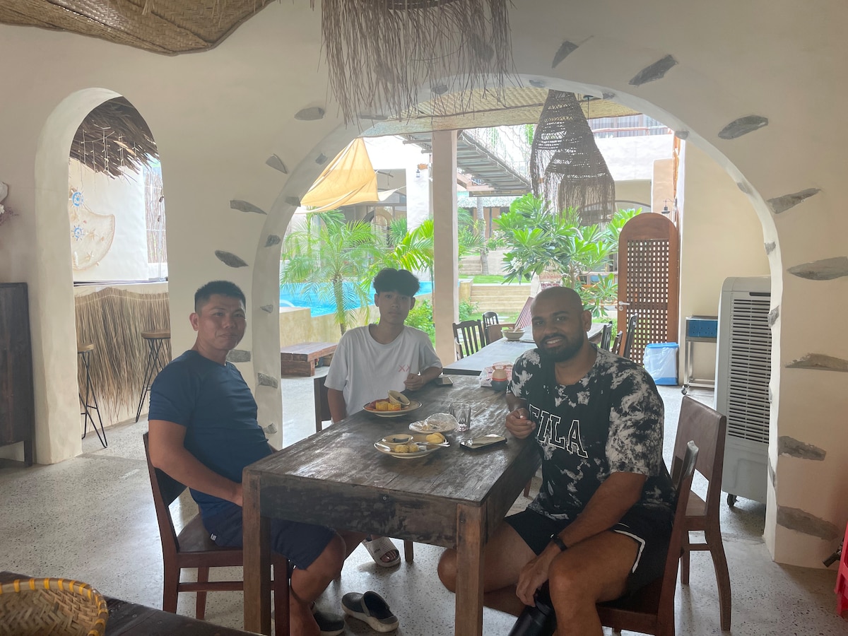 Hello my friend, My name Thuan (Tomy) The Room have simple, cozy yet modern design with great such as air conditioner, open private toilet, private garden. Just a few minutes away from the room Mui Ne Connect is the beach, red sand dunes, and fishing village where Villa guests can enjoy the services at any time. Welcome to my house my friend.