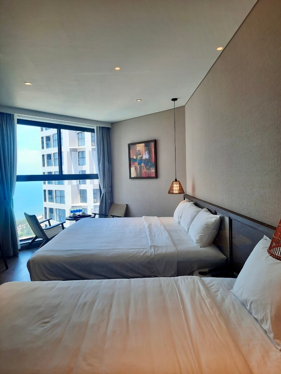 A modern style and freshly renovated large beachfront 2 bedroom apartment in Ocean Vista Phan Thiet with ocean views of the crystal clear water and free parking. Just a few steps to the beach. The apartment features 2 Bedroom 2 full bath. Master bedroom: one king size bed and full bath ( including shower and bathtub), 2nd bedroom with queen size bed + full bath. Fast and free unlimited 300mb WiFi Internet and a 40 inch Samsung LED TV 4K with Netflix HBOGO and TIVO HD service 500 channels.
