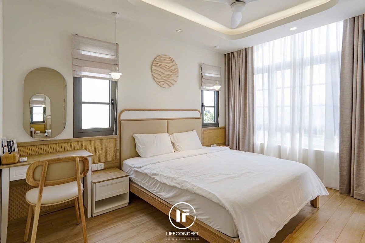 A villa with 3 bedrooms, a large living room, a kitchen and a dining corner by the window, Nha Yen Villa is located at Novaworld Phan Thiet, near the sea, near the entertainment and sightseeing areas in Phan Thiet. Nha Yen... although located right in the center of the coastal city, but... is for those who want to find a little peace, rusticity and chill. Nha Yen is very happy to welcome everyone to visit, experience and experience the real healing space.