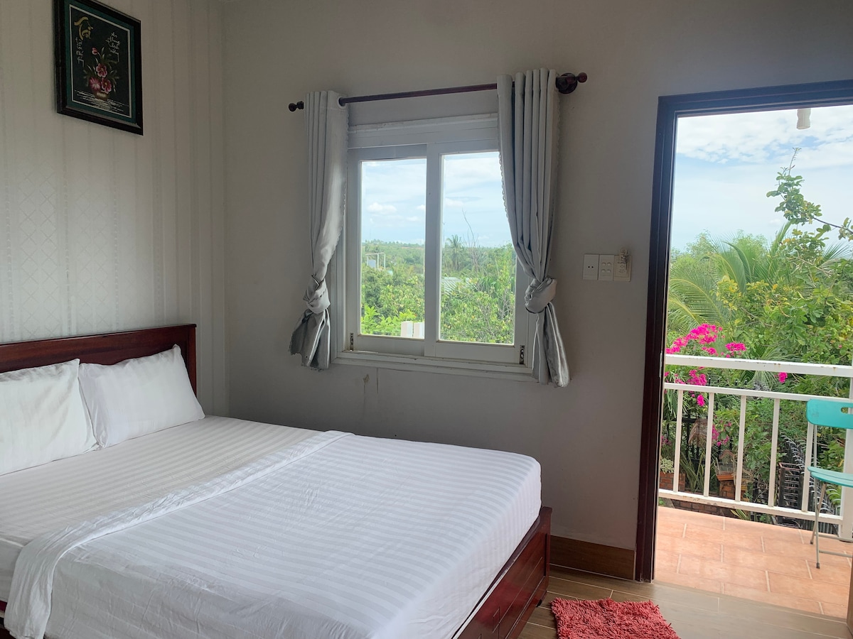 If ever you are looking for privacy or seek for the feeling of being at home while on vacation, Matrusaden will offer you a deep dive into the daily life of locals, in southern Vietnam. With a hint of cosiness Perfectly located, at the right distance from the main road, away from the annoyances of mass tourism, you'll appreciate the quietness, the privacy, the kindness of warm hearted people The room is large enough with private bathroom. You can enjoy the sunrise and the sunset from the balcony