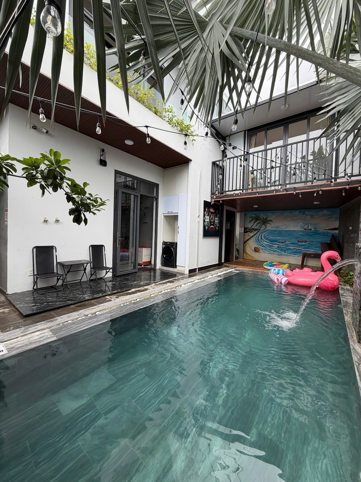 Ngắm nhìn hồ bơi yên bình cùng chút rượu và Bbq với bạn bè ngay tại trung tâm Mũi Né. Cách bờ biển 100m, cách khu ẩm thực phố Tây 50m. Gần vị trí chơi nhảy dù, lướt ván, lướt sóng 100m 5phút đi bộ.