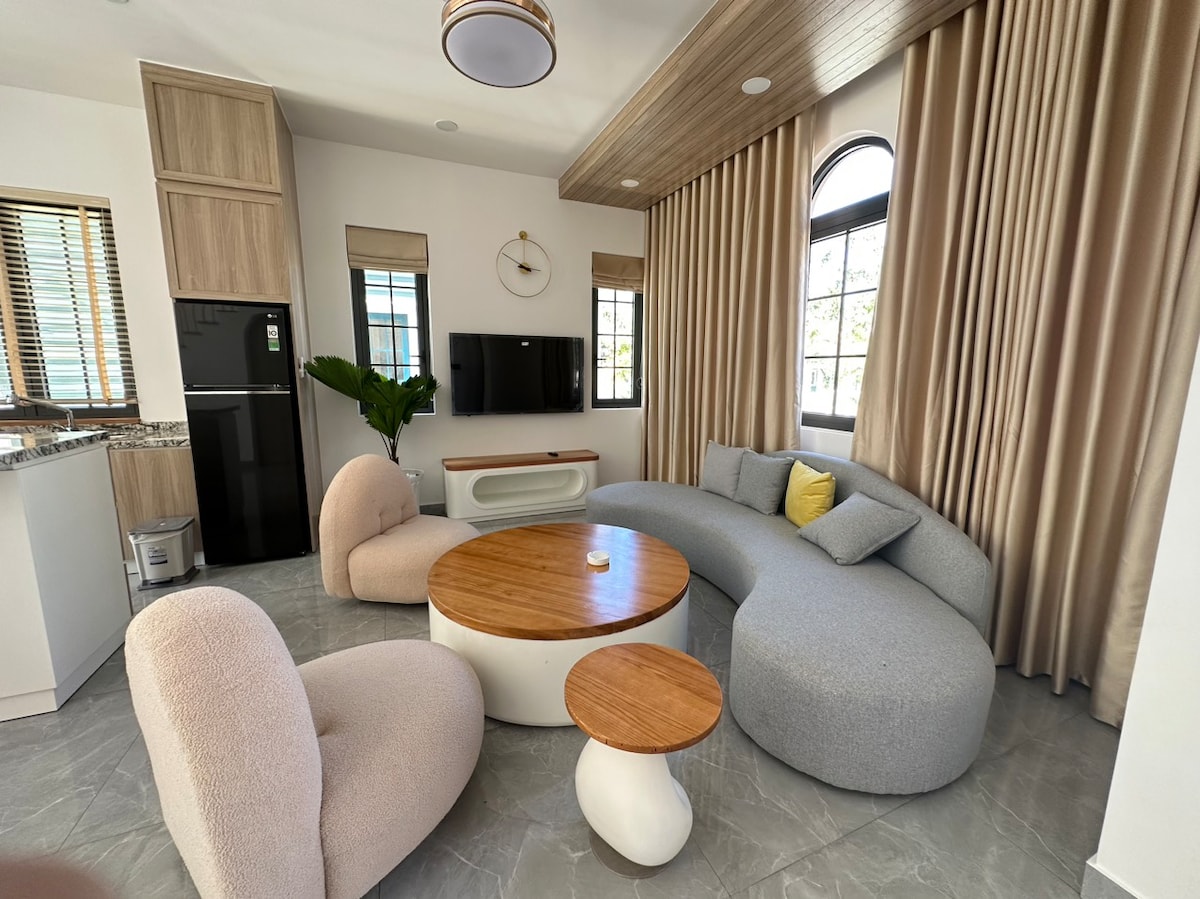 Our cozy villa features 3 spacious bedrooms, a pool center nearest, and a lush garden perfect for BBQ nights. Wake up to the sound of the ocean, sip your coffee by the pool, or explore nearby beaches and local markets. Perfect for families and friends looking for a peaceful life. •3 king-bed bedrooms with garden or balcony views •Open living room & full kitchen with everything you need •Private outdoor pool + sun loungers •Smart TV, fast Wi-Fi, •Free parking on site Only 5 minutes to beach