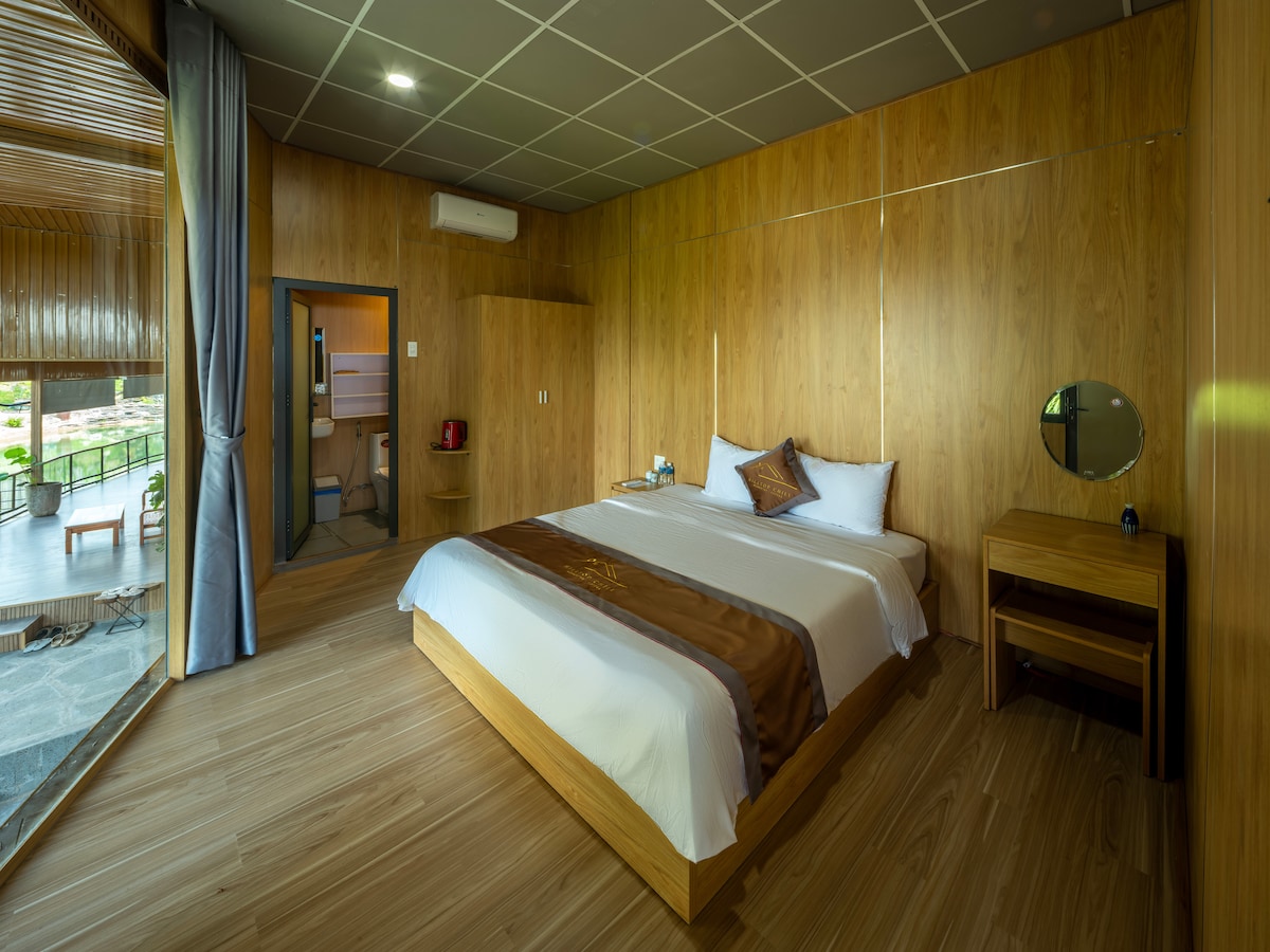 Discover serenity in our intimate room for two at Lotus Garden Resort. Adorned with unique decor, it blends artistry with comfort. Enjoy a garden view, and unwind some extra services: breakfast buffet, sauna, tour guide, and massage services. A one-minute walk brings you to the beach, where you can relish the beauty of the sunset. Our central location provides easy access to many attractions, like Fairy Stream, Orange Sand Dunes, Mango Beach, Wine Castle, etc. only within 5-15 min drive