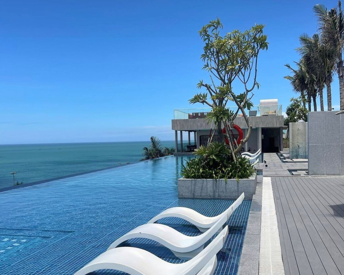 Phòng ở vị trí tầng cao, có view biển tuyệt đẹp. Quý khách sẽ có trải nghiệm đáng nhớ trong chuyến đi. Điếm nhấn là những hồ bơi vô cực tuyệt đẹp Quý khách sẽ có những bức ảnh tuyệt đẹp. Bãi biển hoang sơ, nước biển trong xanh kết hợp với bãi biển trải dài. Dự án nằm trên cung đường cong ven biển được đánh giá là cung đường biển đẹp nhất Việt Nam