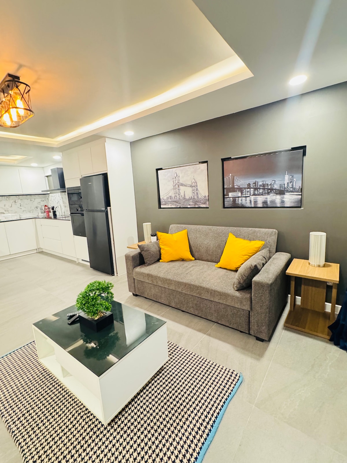 Stylish 1-bedroom loft condo in Phuket’s Boat Avenue, just steps from shops and cafes. The 50 sqm unit offers a bedroom and bathroom downstairs, with a living area, work desk, and second balcony upstairs. Fully furnished with kitchen, Wi-Fi, and washer. Only 5 mins to Bang Tao Beach, 10 mins to Laguna Golf, and 25 mins to the airport. Perfect for short or extended stays.