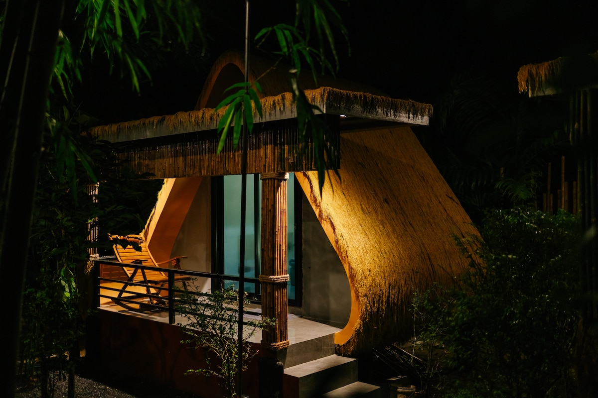 此栋别墅为COCO PALACE中的其中一栋,一共两层,最多可容纳4个人。一层是一个大床房,独立卫生间和阳台。二层是一个大床房,独立卫生间和阳台,还有一个非常特别的门,人送称号霍比特之门。 非常漂亮的花园,有泳池,冥想台,瑜伽台,休息区等公共设施。