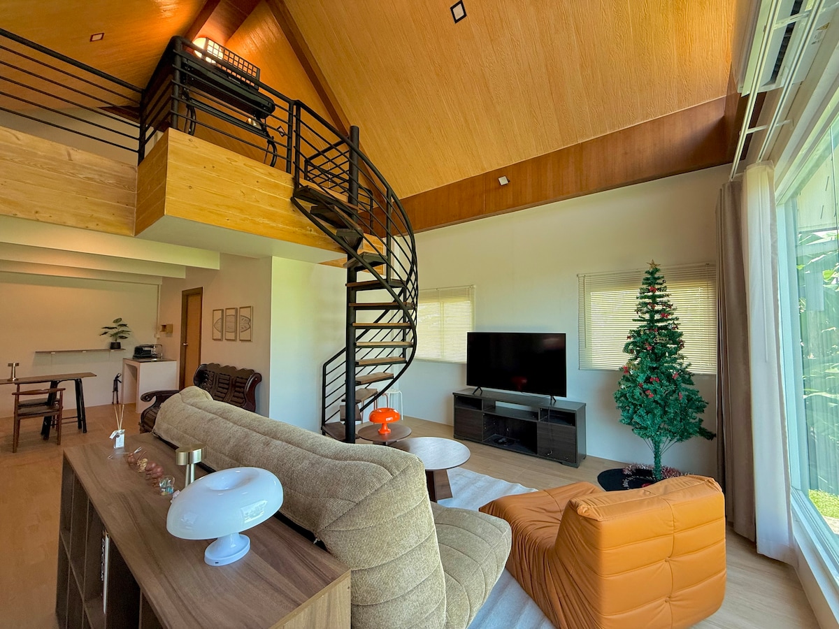 Welcome to Khaolak Attic Home, a newly renovated mid-century inspired hideaway near the entrance of Memories Beach. Enjoy airy living with high ceilings, a spiral staircase, and a cozy attic bedroom featuring premium Lunio beds for restful sleep. Within walking distance to local restaurants, 7-Eleven, temples, and a Muay Thai gym, with waterfalls and beaches just a short drive away — the perfect base for your Khaolak escape.