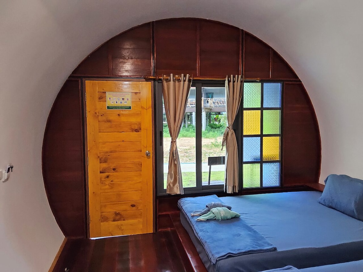 A bungalow with a garden view offers a space to relax and enjoy nature. Baanrimfai is a unique homestay experience in Phanom district, offering serenity with beautiful mountain and palm tree plantations view. We are a perfect stop for guests who would like a break from the touristy area. We have diverse activities such as a kid swimming pool, watercycle, badminton court, quad bikes and golf cart. On the premises, our cafe serves food and drinks from 09:00 - 19:00.