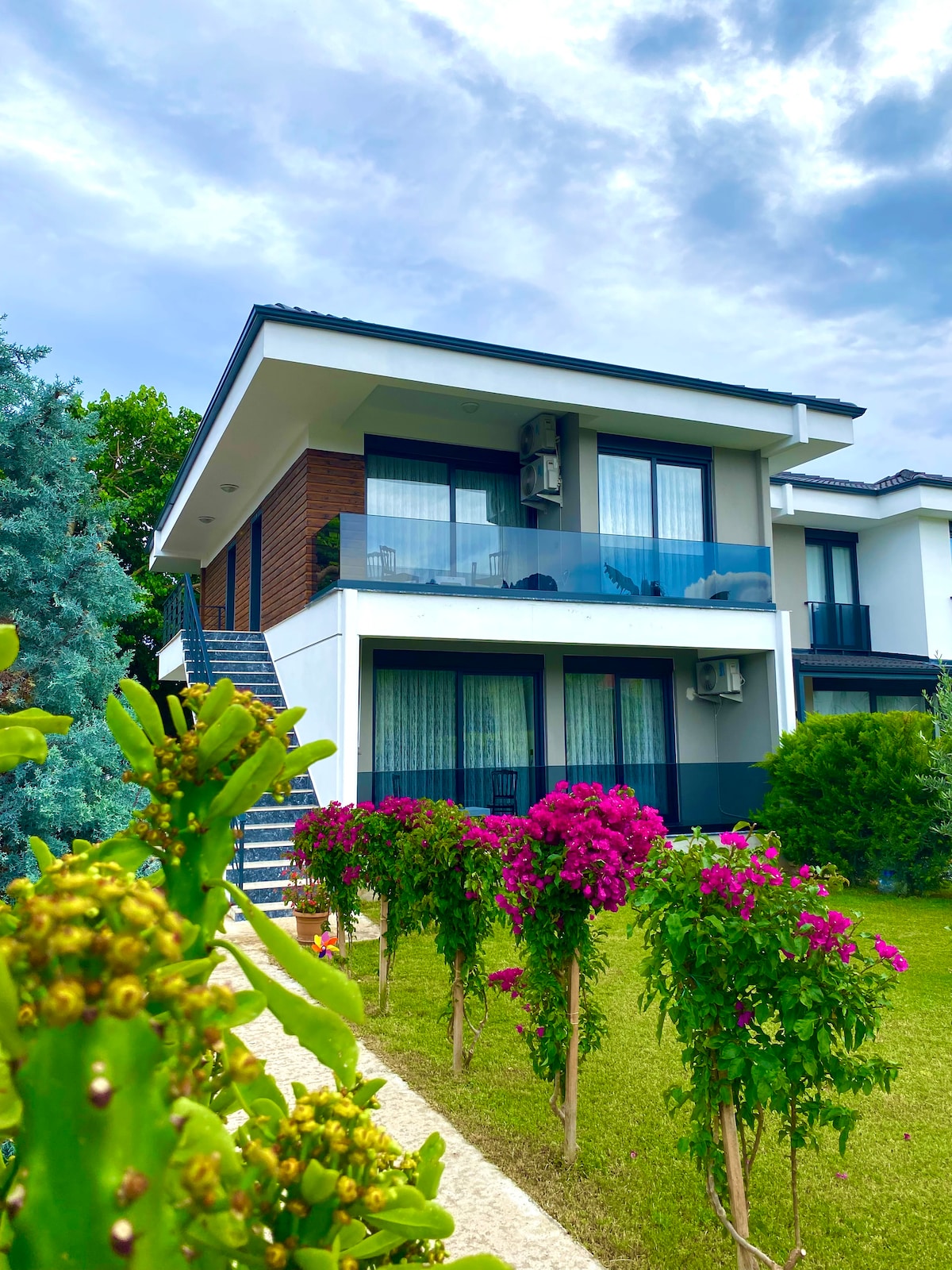 Konaklama Özellikleri • Geniş Kapasite: 2 Yatak Odası + Doğrudan bahçeye açılan geniş salon ile 6 kişi konaklama • Tam Mutfak: İhtiyacınız olan tüm ekipmanlarla donatılmış mutfak alanı. •Yüksek hızlı, sınırsız fiber internet • Ücretsiz çarşaf, nevresim ve havlu değişimi 🏖️ • Size Özel Loca: Havuz başında, her aileye özel tahsis edilmiş, konforlu yataklı lüks localar. • Plaja : Araçla sadece 2 dakika, yürüyüşle 15 dakika • Plaj özel ücretsiz şezlong ve şemsiye • Merkezi marketler 200 mt