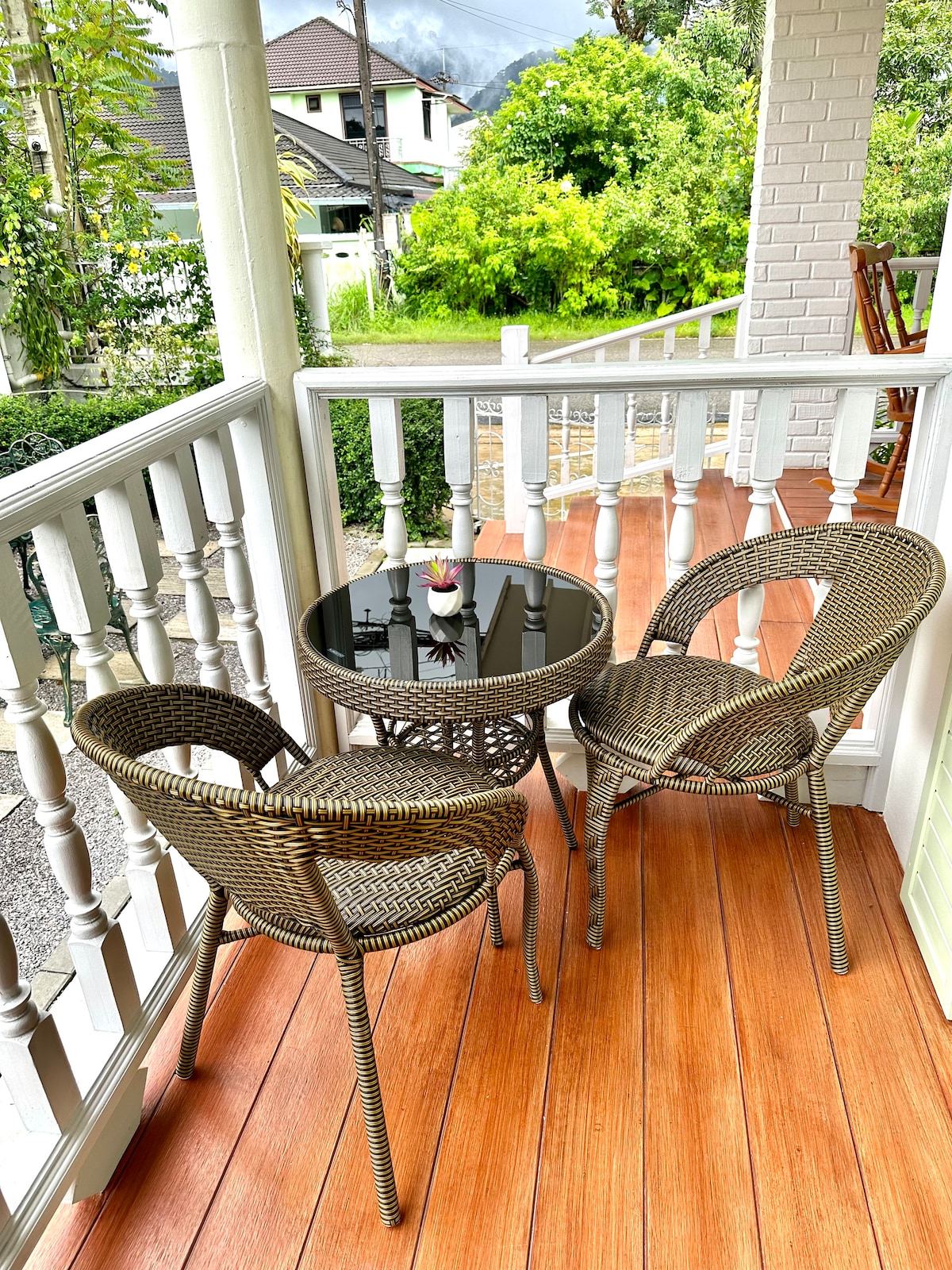 เติมพห้อง 9 ชลระอุ ห้องเตียงไม้ 6 ฟุต อยู่ชั้นสอง มีห้องน้ำในตัว มีห้องแต่งตัว ห้องใหญ่ เงียบ สงบ เป็นส่วนตัว ตกแต่งสไตล์วินเทจ มีลานระเบียงใหญ่ส่วนตัว เหมาะกับการนั่งเล่น อ่านหนังสือ จิบชา ชมวิว หรือนั่งทำงาน (พื้นที่ห้องพัก 30 ตรม.) สิ่งอำนวยความสะดวกภายในห้อง : ไวไฟ เครื่องปรับอากาศ ตู้เย็น สมาร์ททีวี พร้อม Netflix ไดร์เป่าผม เครื่องทำน้ำอุ่น ผ้าเช็ดตัว ผ้าเช็ดผม แชมพู ครีมอาบน้ำ กาต้มน้ำ พร้อม ชา กาแฟ และน้ำดื่ม