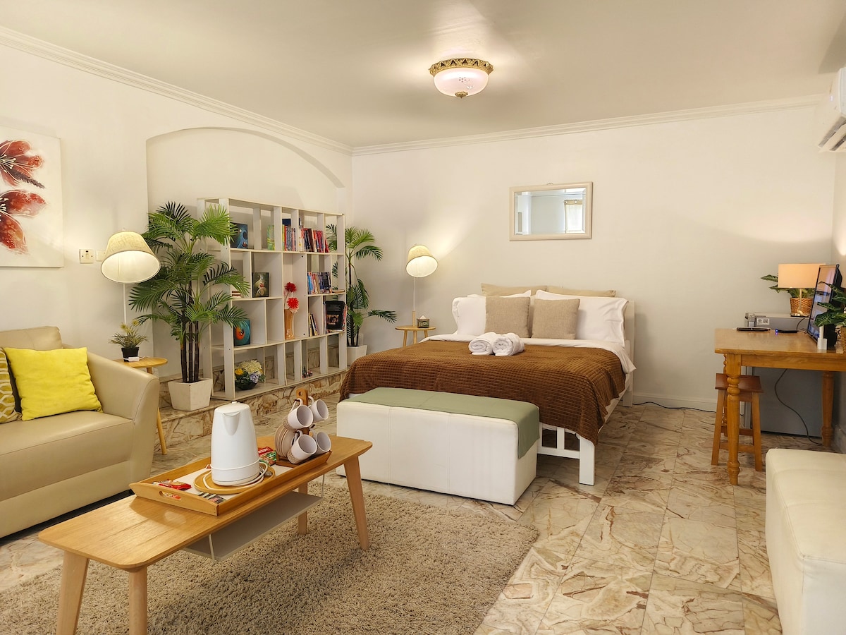 This centrally located studio apartment provides a warm, inviting atmosphere in a stylish Bangkok's mid-century setting—perfect for travelers seeking a cozy home away from home. Experience comfort and charm in the heart of the city. Be sure to check out our other listings at the same location on our profile!