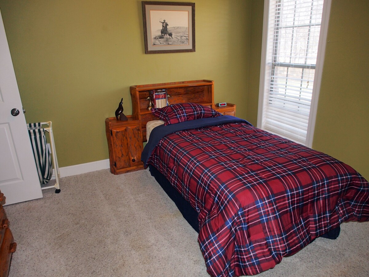 Take it easy at this unique and tranquil getaway, peacefully tucked back away from the rest of the world. The gravel lane is a mile, so enjoy the scenery as you drive back past trees and wildlife. This apartment is in an airplane hanger, modernly decorated with all the amenities you need We are excited to give you the best Airbnb experience.