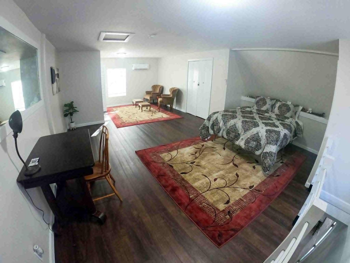 One large room has 1 queen bed, a futon, and we can add a folding twin bed if needed. Full bathroom with shower and sink. Fullsized fridge with freezer, electric cookstove with oven,big screen TV with netflix, Hulu, etc. New Serta mattress, new hardwood floor, Fast WiFi, Close to town but no neighbors, private entrance. Close to the highway, Off road parking space close to the door. Well mannered pets welcome, ill mannered humans not so much.