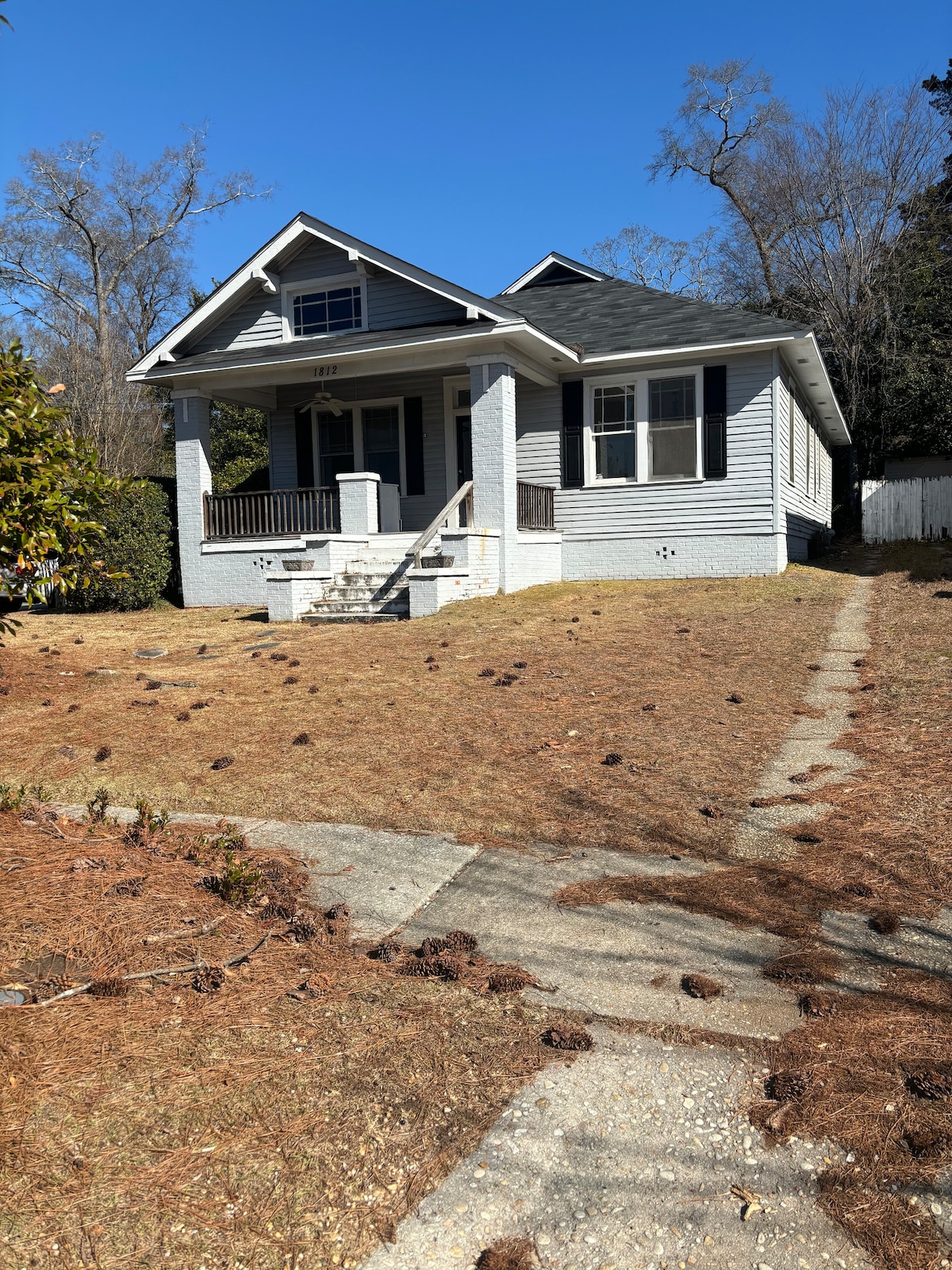 A warm and inviting home in the heart of the Columbus downtown historic district. Just a very short walk to the Columbus Civic Center, baseball stadium and the Riverwalk. 10minutes to Ft Benning and just a few blocks from all of the fabulous downtown restaurants and entertainment. Recently totally renovated with hardwood floors, exposed fireplace, front and back porch, new cabinets with granite countertops, &custom shower. Back deck has table/chairs and charcoal grill.