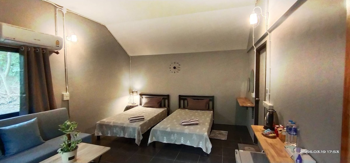 这间小屋坐拥山景,四周绿树环绕。温馨舒适的空间可容纳两人,配备一张双人床和一个独立卫生间。小屋后方的小山是欣赏日出的绝佳地点。阳台是放松身心、享受烹饪乐趣的理想场所。 小屋距离曼谷2.5小时车程,距离华欣50分钟车程。自驾出行十分便捷。如果您不方便自驾,也可以按天租用带司机的车辆。入住两晚即可升级至更大的房屋。