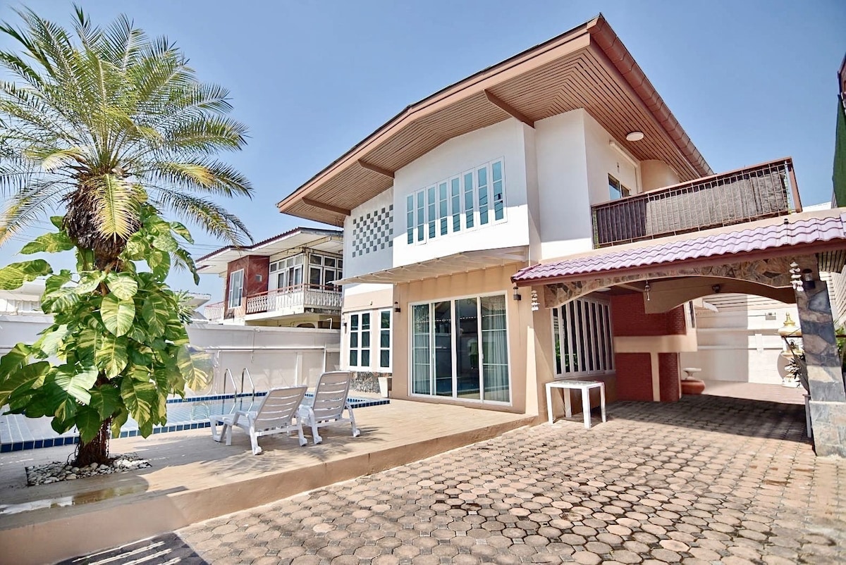 全新*华欣中心泳池别墅,靠近海滩和夜市